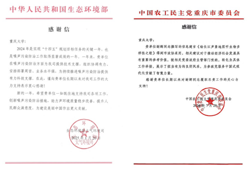 (1)2024年,团队在噪声污染防治领域为生态环境部大气环境司提供了坚实的技术支持。在其助力下,噪声污染防治工作成效斐然,为持续推进相关防治工作筑牢了有力的科技根基,获得了生态环境部的认可与感谢。