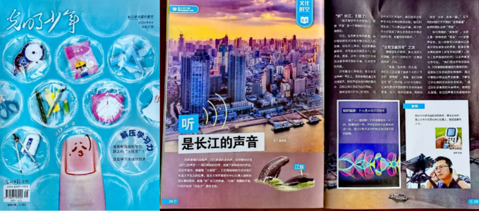 (3)谢辉在光明日报社主管的《光明少年》杂志,发表科普文章《听,是长江的声音》。该文面向青少年读者,通过生动有趣的表达方式,激发他们对声景研究的兴趣。