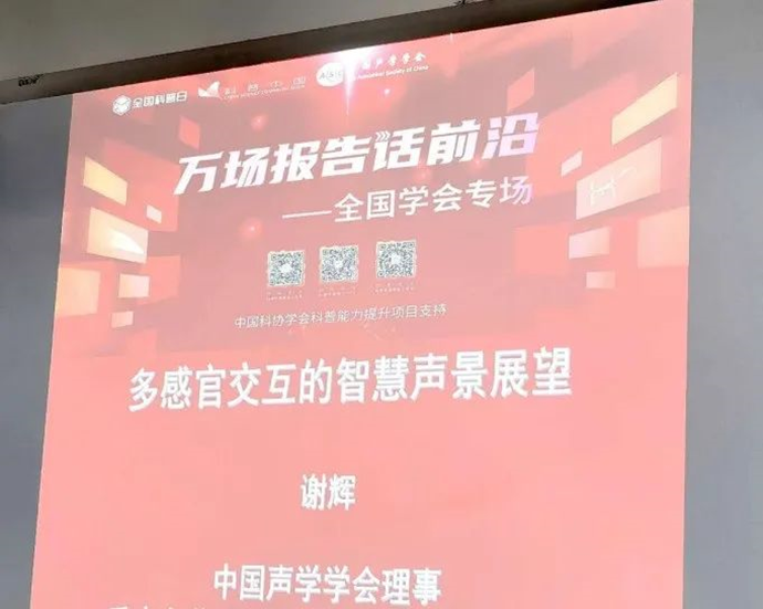(4)谢辉在全国科普日“万场报告话前沿——全国学会专场”,做《多感官交互的智慧声景展望》科普报告。