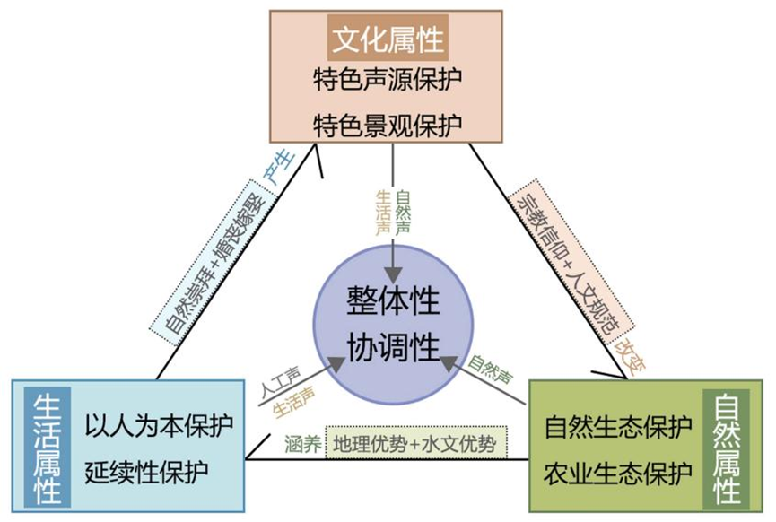 二十大报告提出“物质文明和精神文明相协调”,不仅强调乡村物质空间的保护,更要贯彻乡村文化振兴的建设理念。声音作为传统村落文化的象征和精神的载体,在唤起民众归属感、营造有地方记忆的空间等方面具有独特优势。为此本研究引入声景概念,以“森林-村寨—梯田—水系”四素同构的哈尼族典型村落为例,通过声环境客观测试和游客主观评价,探讨哈尼族传统村落的声景特征并构建声景保护框架。