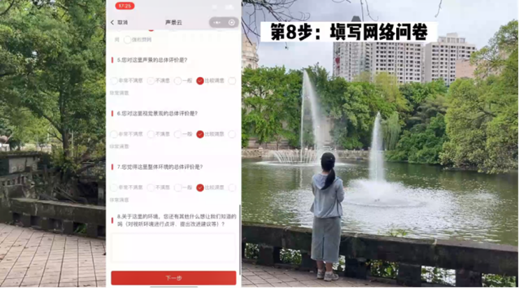 为响应十四五期间绿色建筑发展规划的口号,针对手机噪声测量软件精度低,而专业声级计普及性低、缺主观评价的现状,X-scape Lab开发了“声景云”声漫步软件。