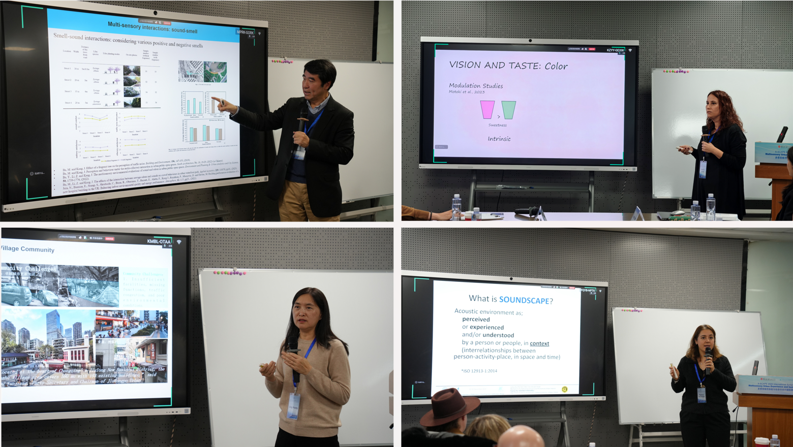 12月13日至14日,来自全球的专家学者聚焦多感官城市设计与包容性发展的核心议题,分享了极具前瞻性的研究成果。英国伦敦大学学院康健教授聚焦声景量化体系的构建逻辑,解析了声景评估从单一物理指标向综合感官指数的进阶路径。葡萄牙里斯本大学学院Marilia Prada助理教授以“味觉与听觉的跨模态关联及‘声音调味’现象” 为核心,探究了多感官认知交互机制,验证了听觉刺激对味觉感知的调制效应。重庆大学黄瓴教授以重庆为例剖析了城市更新中治理模式的转型与落地策略。土耳其詹卡亚大学Papatya Yorukoglu教授构建了适配包容性与修复性需求的多感官室内空间设计框架,解析了文化语义对感官环境的影响。本专题由澳大利亚莫纳什大学郭玉明教授主持。