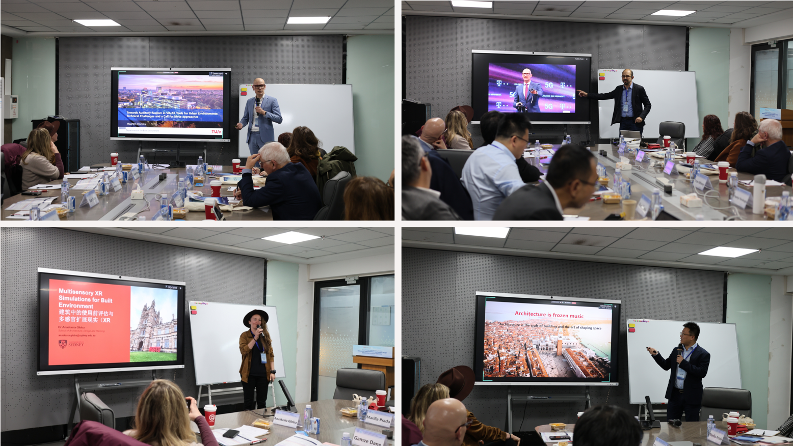荷兰埃因霍芬理工大学Maarten Hornikx教授探讨了 “城市环境 VR/AR 工具的听觉真实感实现”,分析了虚拟环境声学模拟的技术瓶颈,呼吁建立跨学科的多元方法协作体系。德国德累斯顿工业大学Ercan Altinsoy教授解析了声-振耦合对感官感知的增强效应,验证了多模态 VR 在声景研究中的应用价值。澳大利亚悉尼大学Anastasia Globa副教授整合了多维度感官刺激与生物传感数据,探索了沉浸式技术在空间体验优化中的应用。重庆大学谢辉教授构建了多感官整合的智能交互模型,明确其在健康场景中的实践范式。本专题由重庆大学刘畅副教授主持。