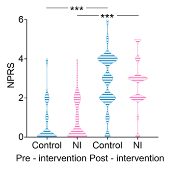 图5. 自然声干预前后 OR 参与者的疼痛感(***p < 0.001)。