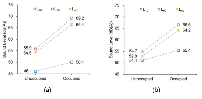 图3. Leq、L10、L90 : WA (a), OR (b).